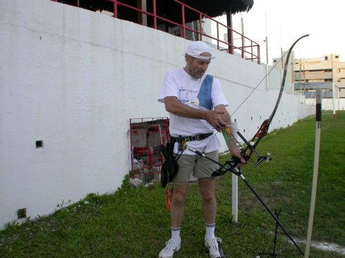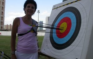 Le Tir à l' arc ici à Joao Pessoa! Il y a toujours du vent mais on s 'habitue! Le problème est que des fois il pleut et alors on a l' impression d' être tombé dans la piscine!!